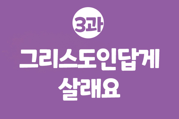 ![]() 3과 '그리스도인답게 살래요' (벧전 3:8-15)를 통해 그리스도인은 그 이름에 걸맞게 살아가며 그리스도를 전할 준비를 하는 것이 하나님의 뜻임을 알고, 우리는 그리스도인답게 살기로 뜻을 세울 것입니다. |